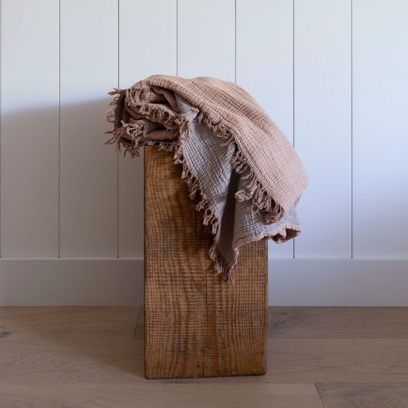 An everyday staple piece for layering, morning coffee on the patio or getting cozy on the couch. Double sided so each throw has two colors.