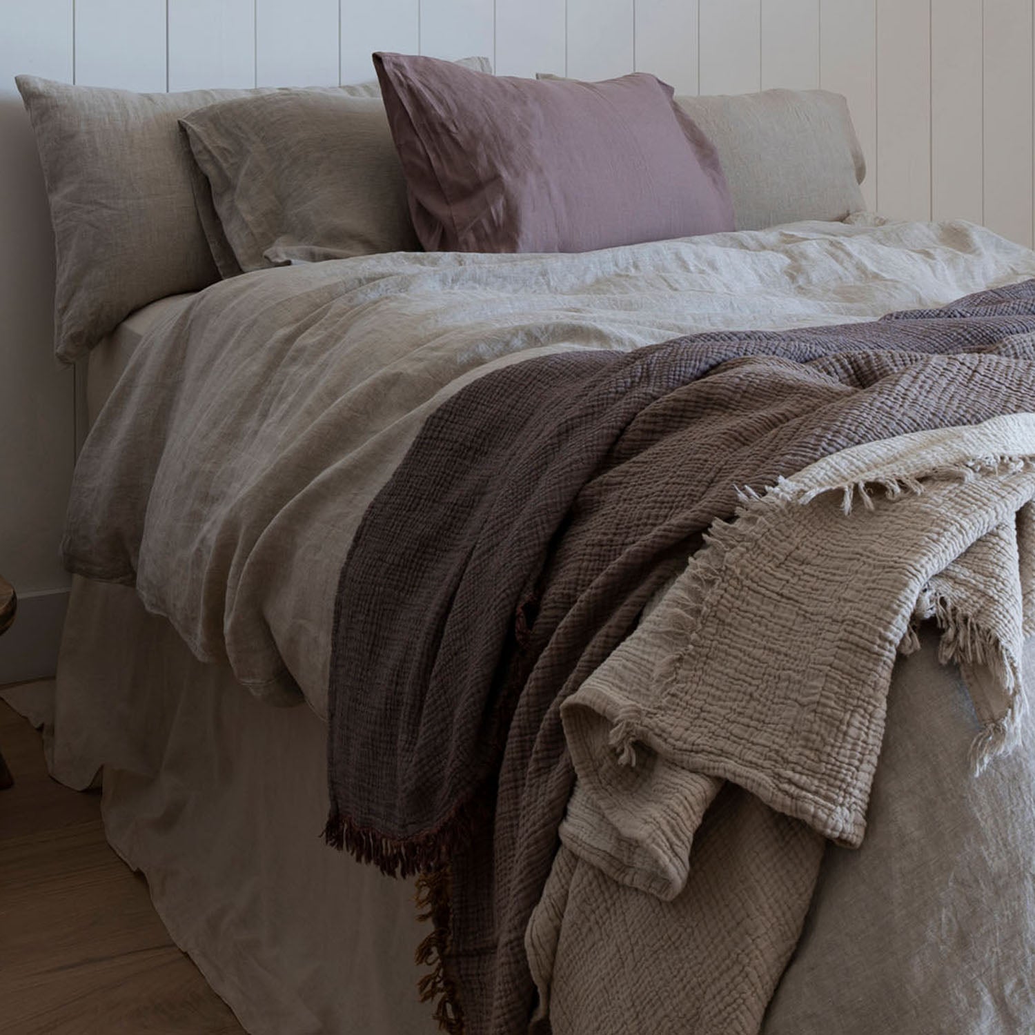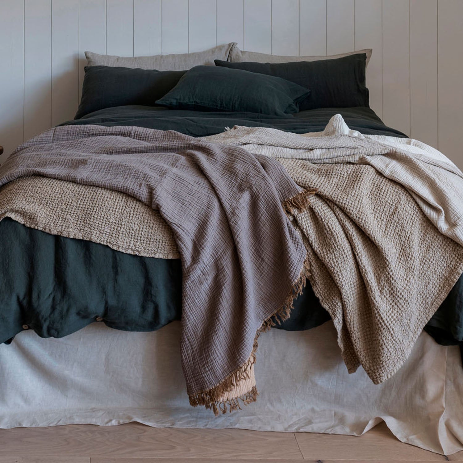 An everyday staple piece for layering, morning coffee on the patio or getting cozy on the couch. Double sided so each throw has two colors.